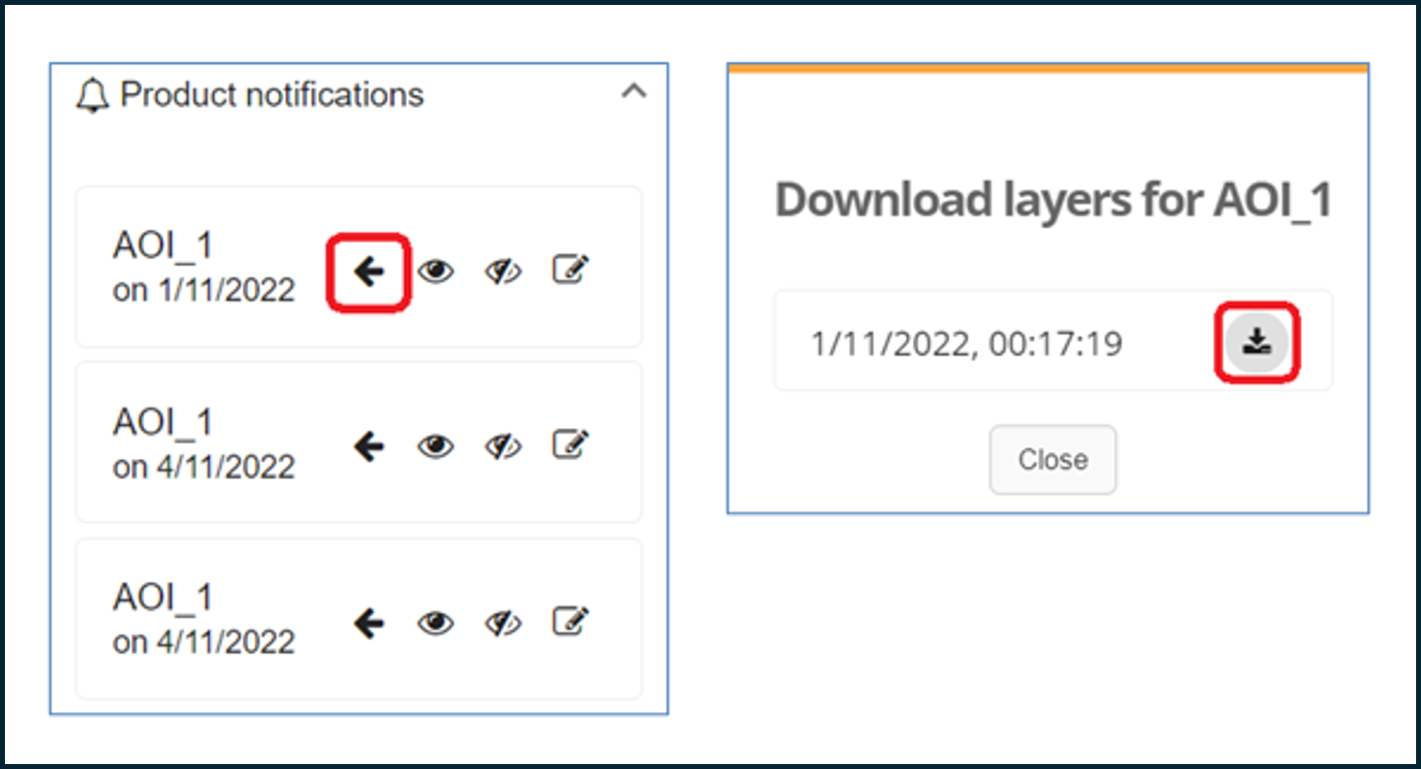 Please note that the maximum number of AOIs for each user is limited to 25. Once the limit is reached, a new AOI can be added only if one of the previous is deleted.